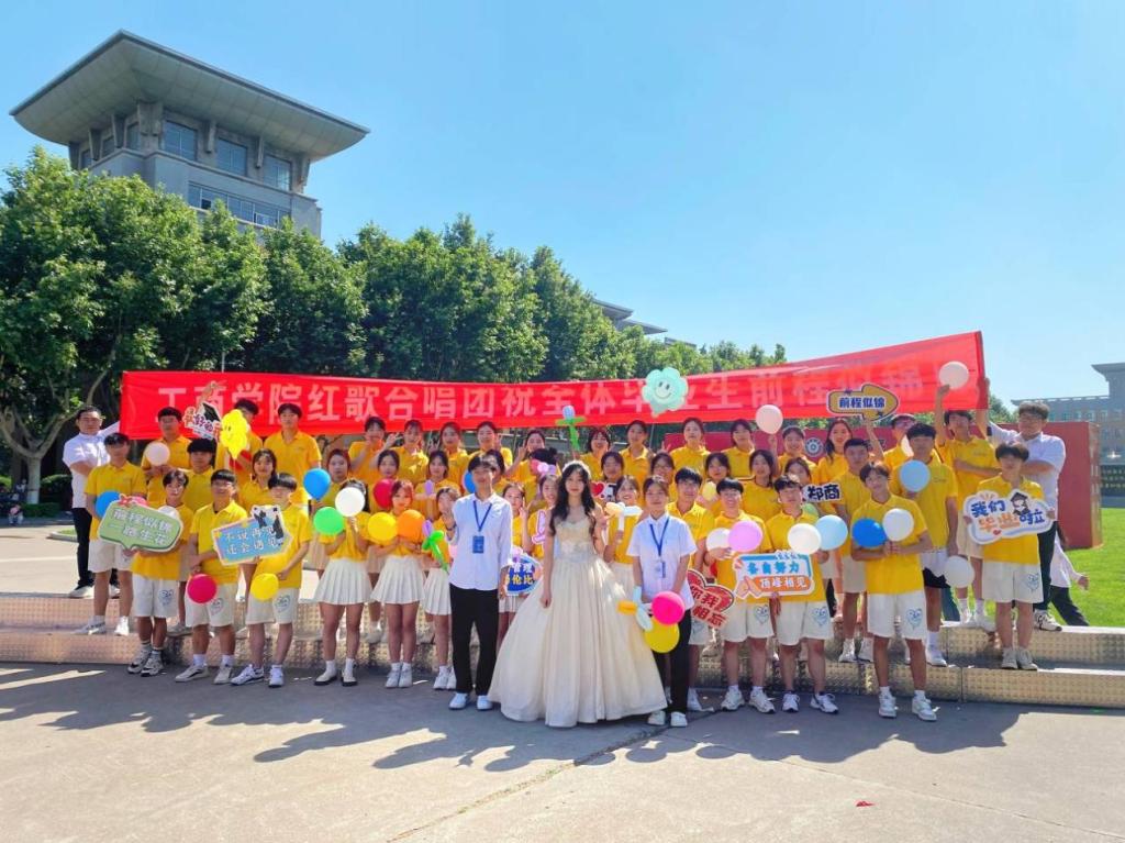 情景剧演出方阵在行政楼门前迅速集合、进行表演,展示工商学子从大一青涩到大四成熟的缩影,每一个阶段、每一个音符都藏着我们工商学子的心声。