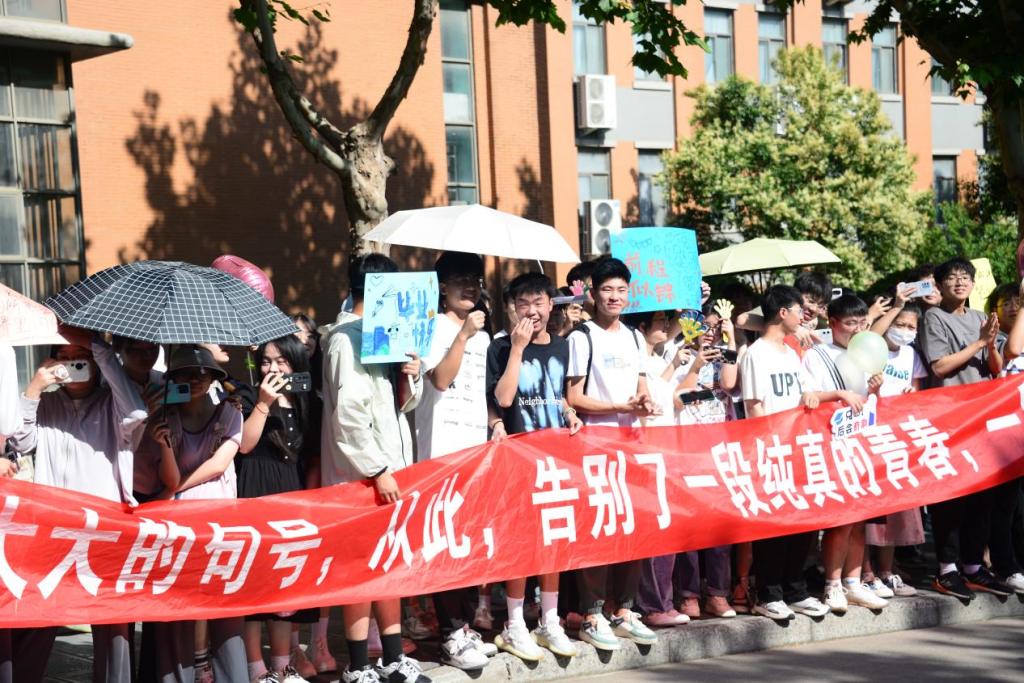 在校生代表带着各式的标语、手卡、鲜花、礼物,有秩序地分列在巡礼路线两侧,为学长学姐们送上祝福;毕业生们与师长、同学们挥手告别,相互祝福,再一次行走在郑商校园里。
