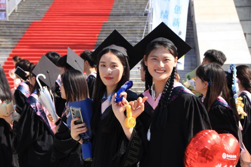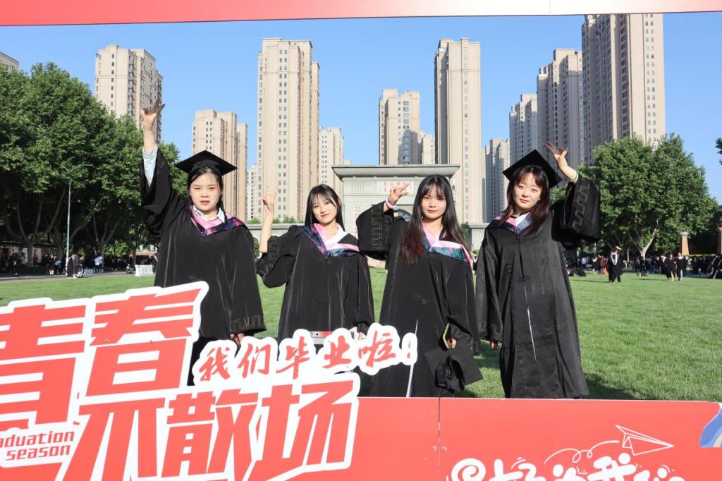 6月8日早上,我院全体毕业生郑重地穿上学士服,带好学士帽,相聚在学校门前广场,与敬爱的师长、同窗共同把自己最纯真的笑脸、最美好的青春模样展现在镜头里,定格在郑商。