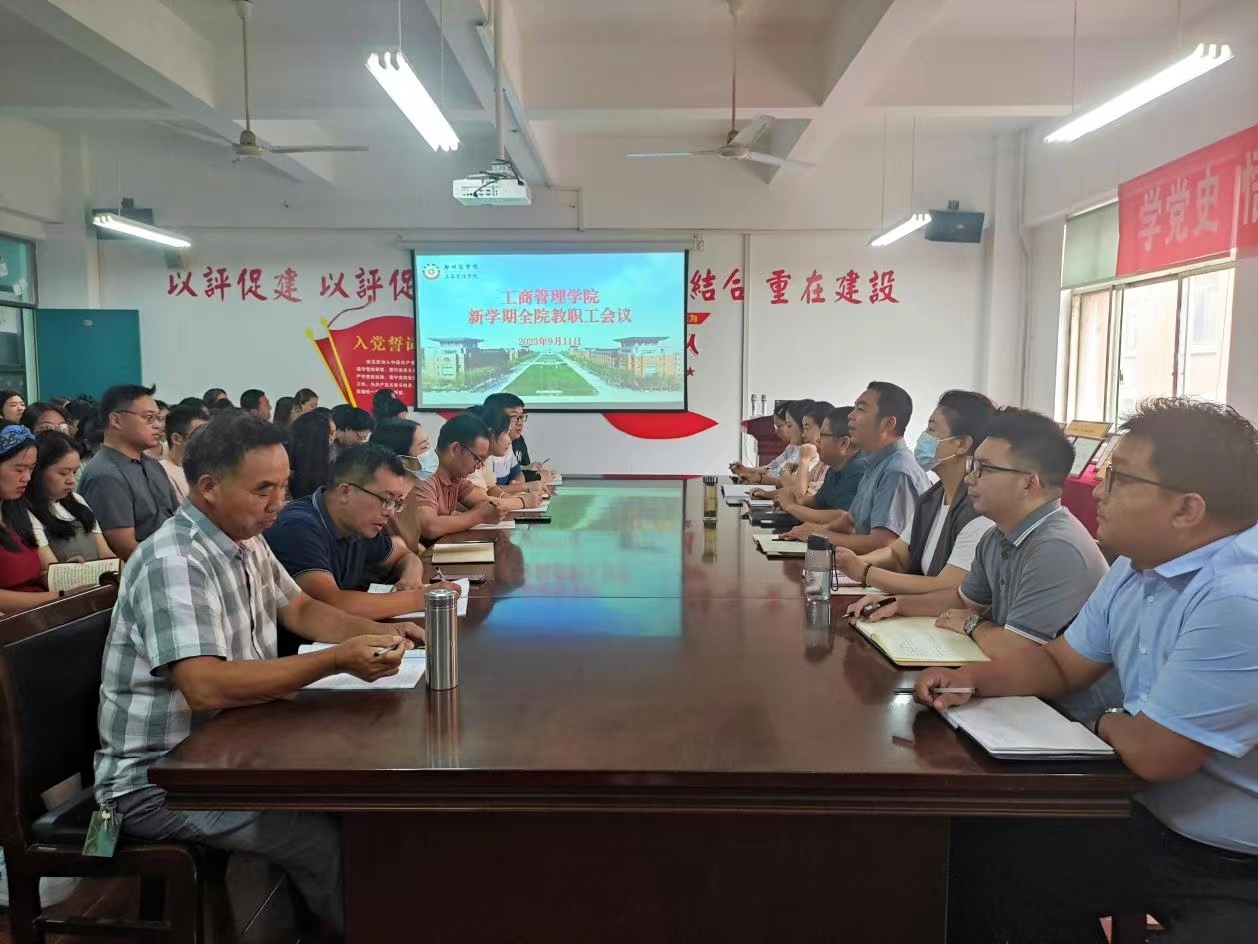 9月11日上午,工商管理学院在2号楼二楼会议室召开全体教职工大会,对新学期各项工作准备情况进行全面安排部署。我院院长杨松柏、党委书记宋森、副院长张卫丽、教学秘书张瑜、团委书记魏瑶及全体教职工参加会议。