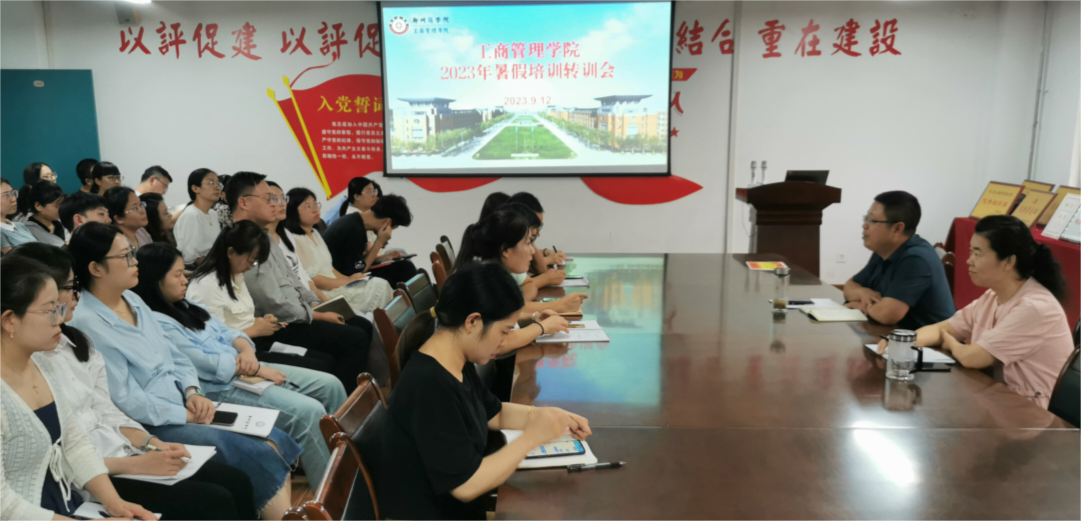 为进一步加强教师培养培训力度,提升教师业务能力和拓展专业视野,使外出培训发挥最大效益。我院于9月12日下午在工商管理学院二楼会议室召开了暑期外出培训转化活动,工商学院杨松柏院长、张卫丽院长及全体教师参加了此次会议。