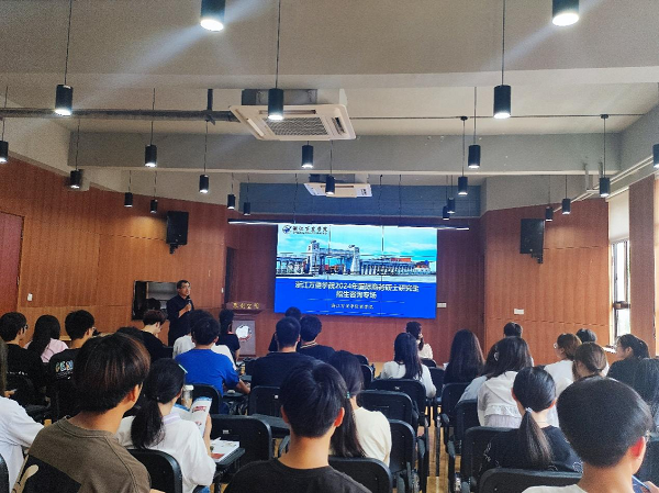 会上,刘主任首先对葛教授前来招生宣讲表示欢迎和感谢,介绍了本次宣讲会的目的和意义。然后,葛教授在对浙江万里学院国际商务硕士基本情况进行介绍的基础上,重点从区位优势、学校发展、学院发展、培养特色、招生政策等方面对国际商务硕士的人才培养情况进行了详细讲解,鼓励学生积极报考浙江万里学院,并对学生现场提出的初试、复试及调剂相关问题进行了交流解答。