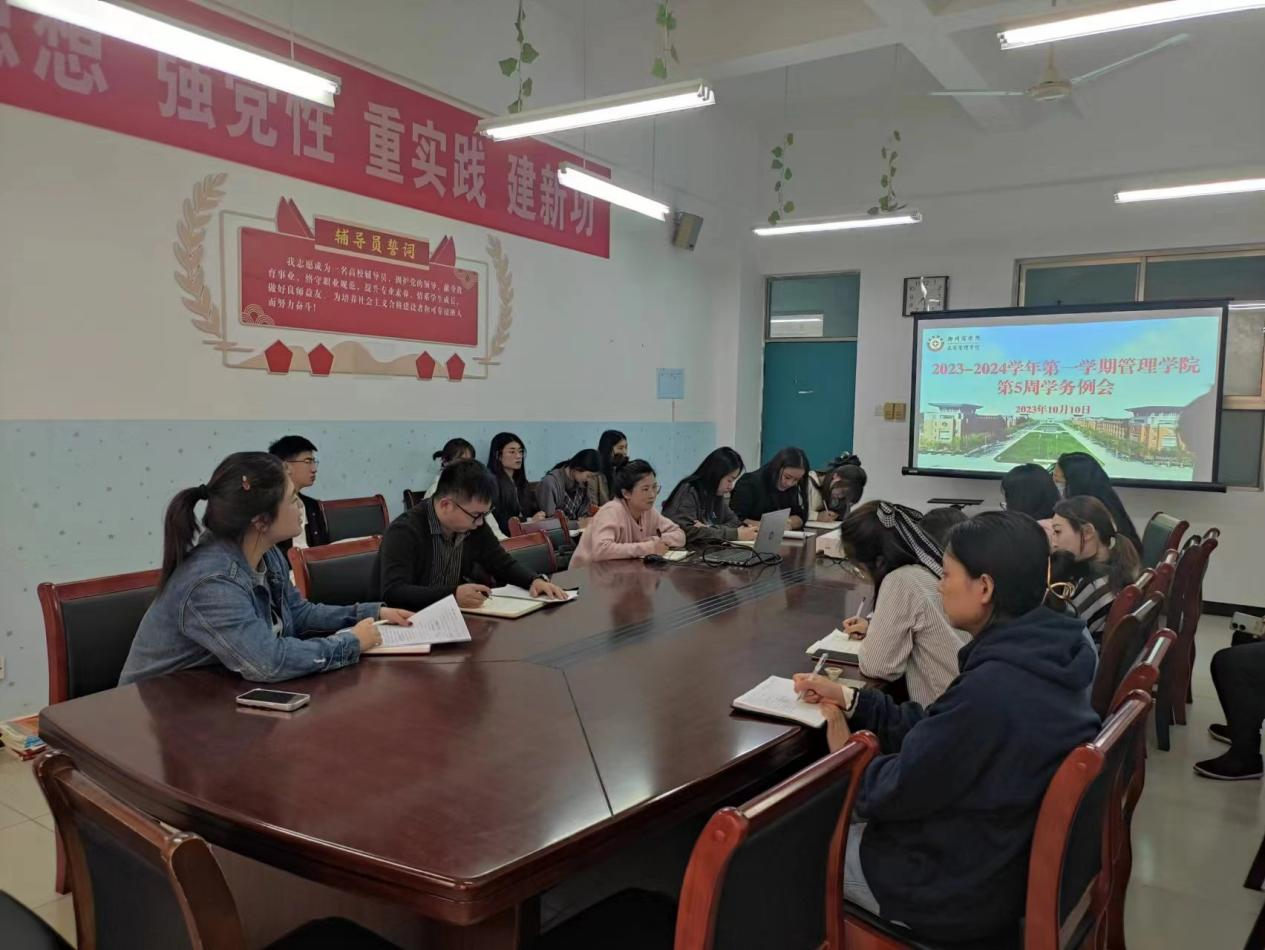 10月10日上午,管理学院在2号楼一楼会议室组织开展2022-2023学年第一学期第五周学务例会,团委书记魏瑶及全体辅导员参加会议。