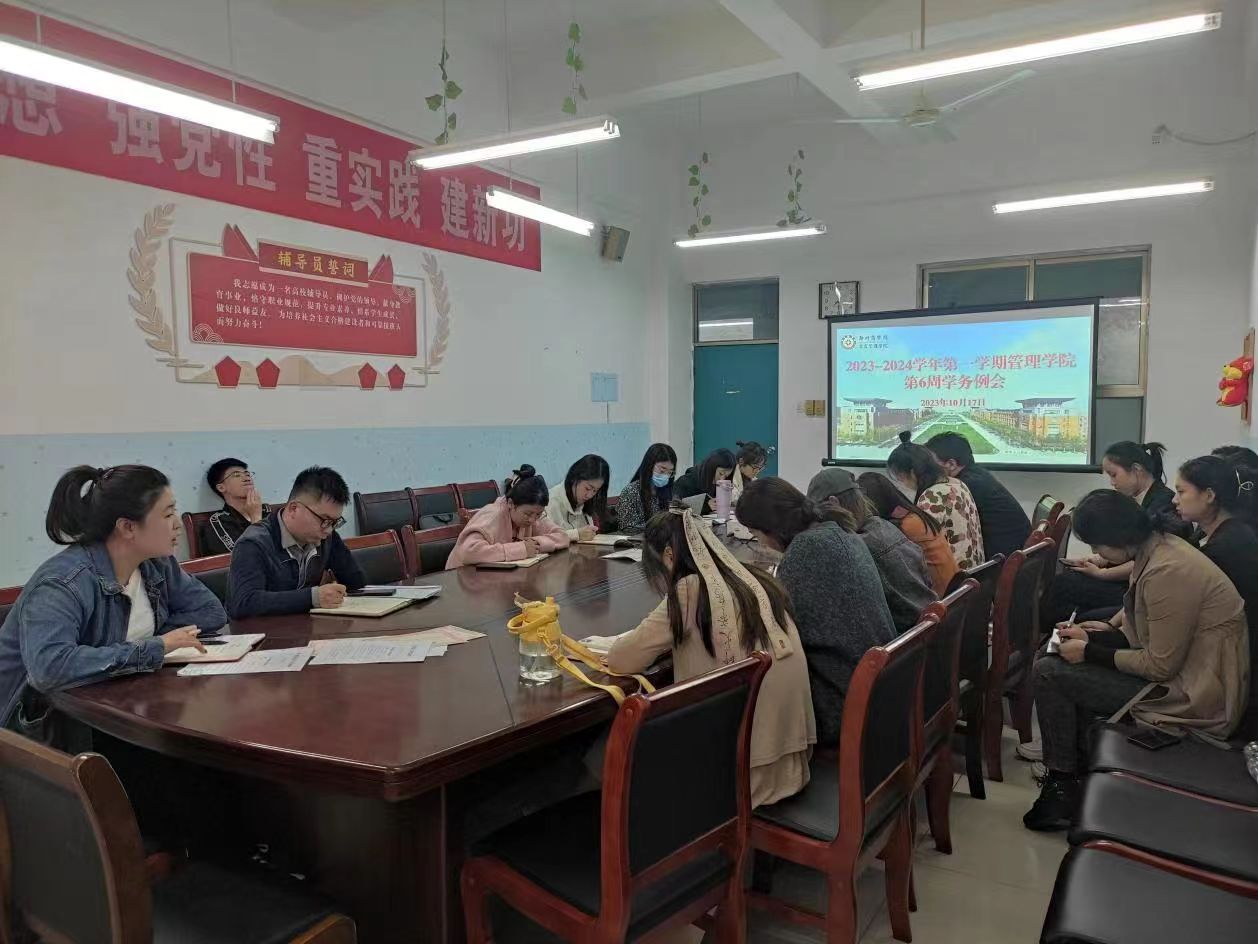 10月17日下午,管理学院在2号楼一楼会议室组织开展2023-2024学年第一学期第六周学务例会。我院团委书记魏瑶及全体辅导员参加会议。