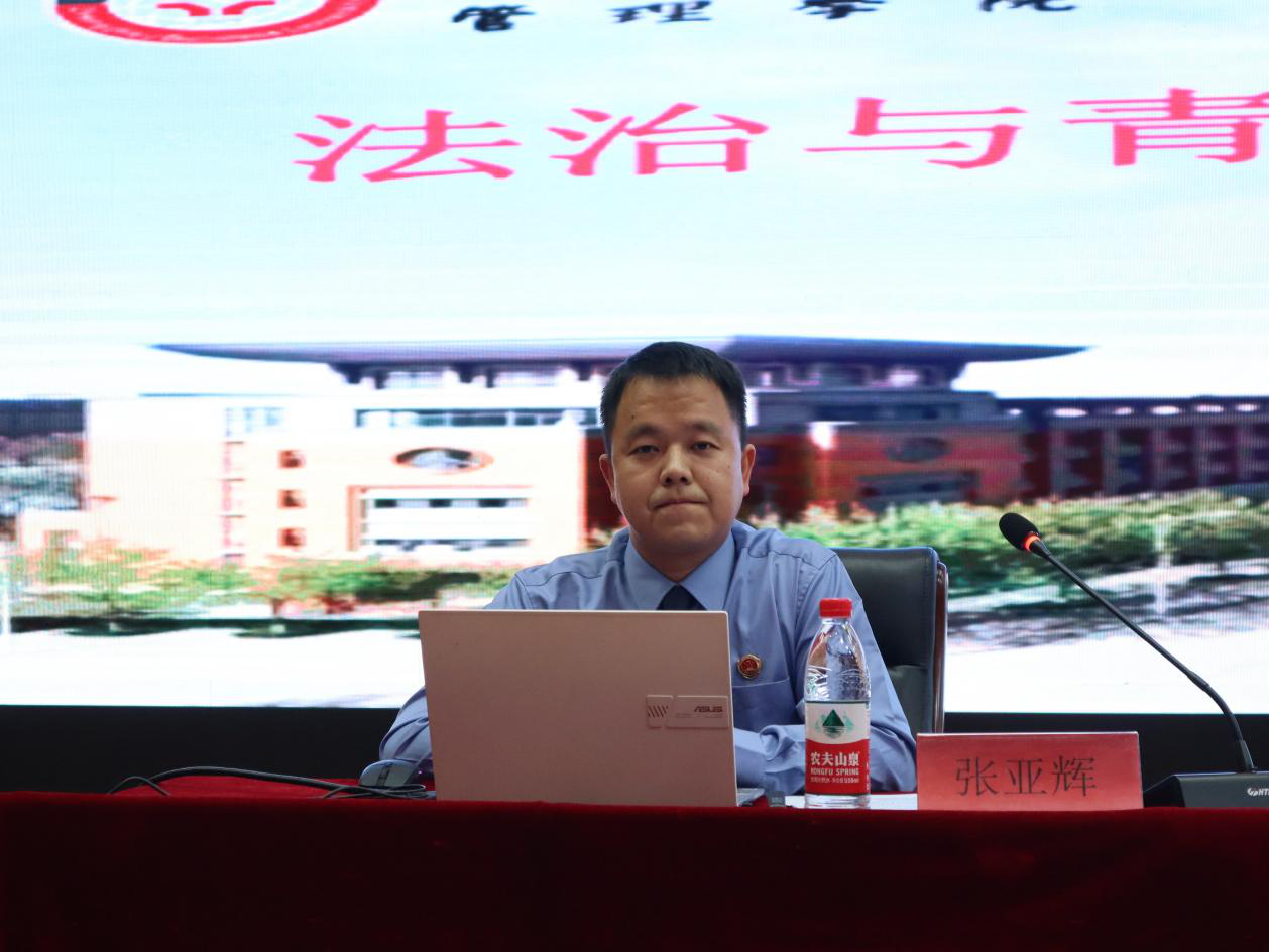 为了让法治走进校园,进一步增强同学们的法治意识,接受法治教育,自觉遵纪守法,学会利用法律进行自我保护,做一个知法、守法的合格大学生,11月2日,管理学院邀请巩义市人民检察院主管副检察长张贤钊、第二检察部助理检察官张亚辉来学院指导工作,助理检察官张亚辉于图书馆一楼国际报告厅做普法宣传专题讲座。