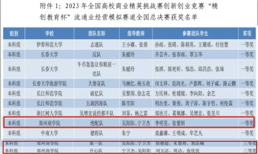 2023年全国高校商业精英挑战赛创新创业竞赛“精创教育杯”流通业经营模拟赛道全国总决赛获奖名单