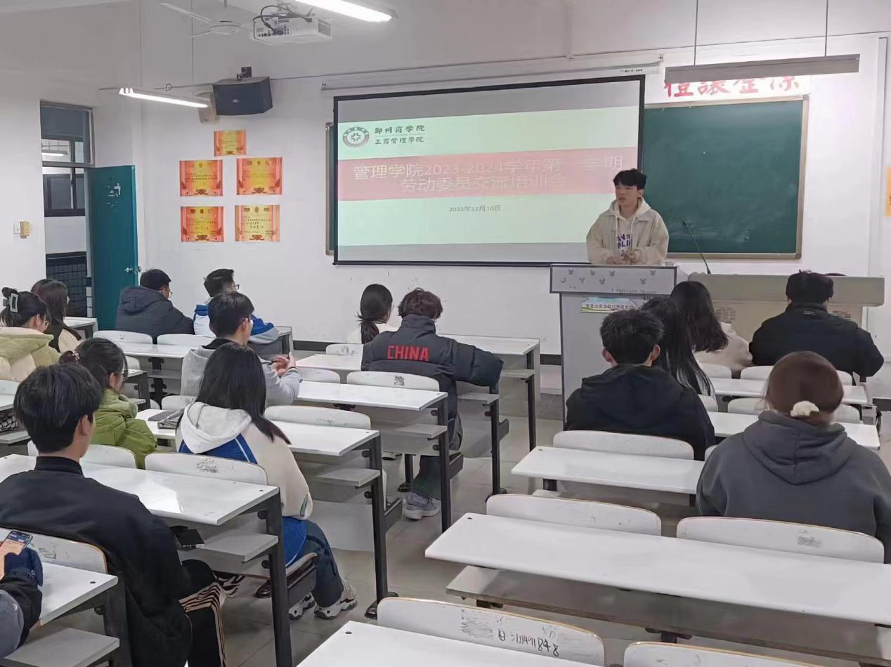 为进一步提升我院学生劳动意识、传承劳动教育精神、弘扬beat365劳动教育特色、加强我院劳动委员的工作能力和工作技巧,11月10日,管理学院组织开展劳动委员交流培训会,我院生活部学生干部、21级和22级劳动委员代表及全体23级劳动委员共同参加本次交流会。