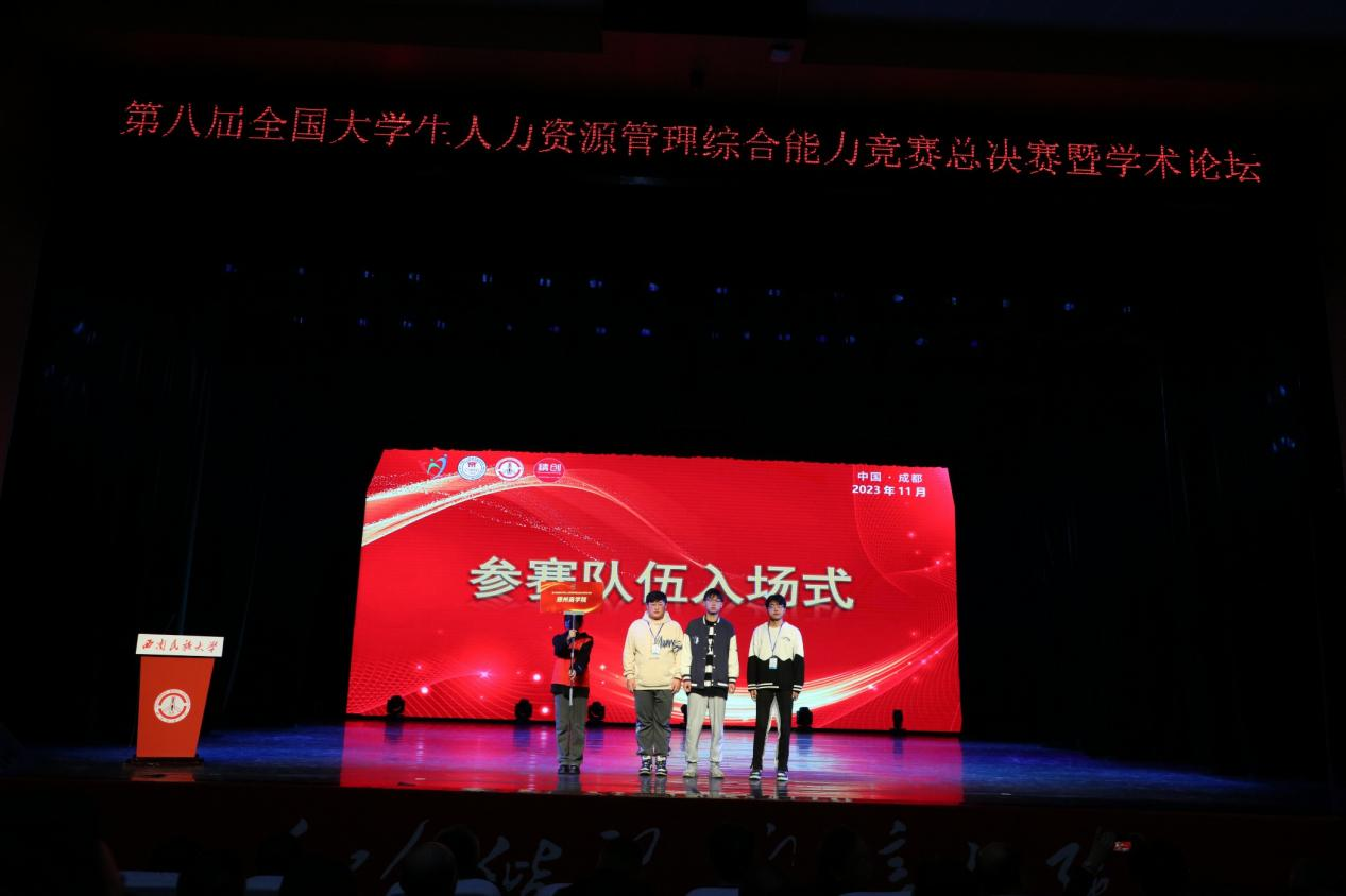 第八届全国大学生人力资源管理综合能力竞赛全国总决赛于2023年11月10-12日在西南民族大学举办。我院工商管理专业学生徐德超、朱慧理、郑宇航组成代表队,在指导老师吴阳阳、宁卫杰的带领下,赴西南民族大学参赛。来自苏州大学、中国民航大学、中南财经政法大学、华侨大学、四川农业大学、河南大学等全国89所院校的92支队伍参赛,其中本科组77支参赛队伍,高职组10支参赛队伍,研究生组5支参赛队伍。