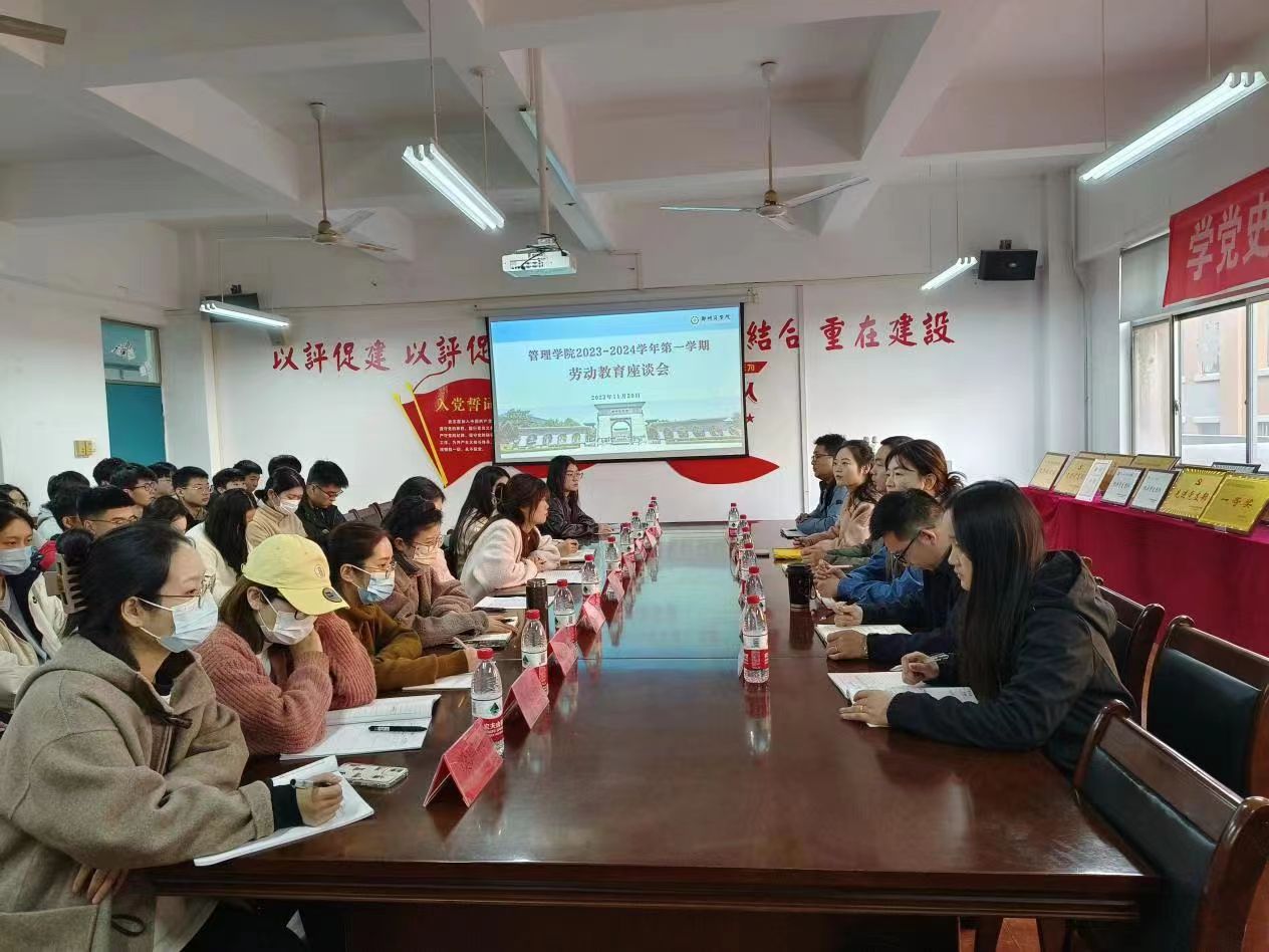 为扎实做好新学期劳动教育工作,进一步走进学生,倾听学生心声,回应学生问题,筑牢beat365劳动育人特色,促进同学们树立正确的劳动价值观,深刻理解beat365劳动教育的意义与内涵,11月20日上午,管理学院组织开展2023-2024学年第一学期劳动教育师生座谈会。管理学院党委书记宋森、团委书记魏瑶、全体辅导员及22级、23级学生代表参会。