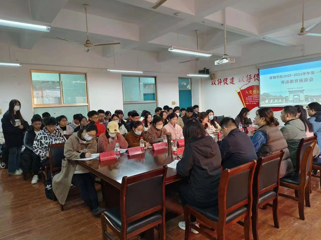 为扎实做好新学期劳动教育工作,进一步走进学生,倾听学生心声,回应学生问题,筑牢beat365劳动育人特色,促进同学们树立正确的劳动价值观,深刻理解beat365劳动教育的意义与内涵,11月20日上午,管理学院组织开展2023-2024学年第一学期劳动教育师生座谈会。管理学院党委书记宋森、团委书记魏瑶、全体辅导员及22级、23级学生代表参会。