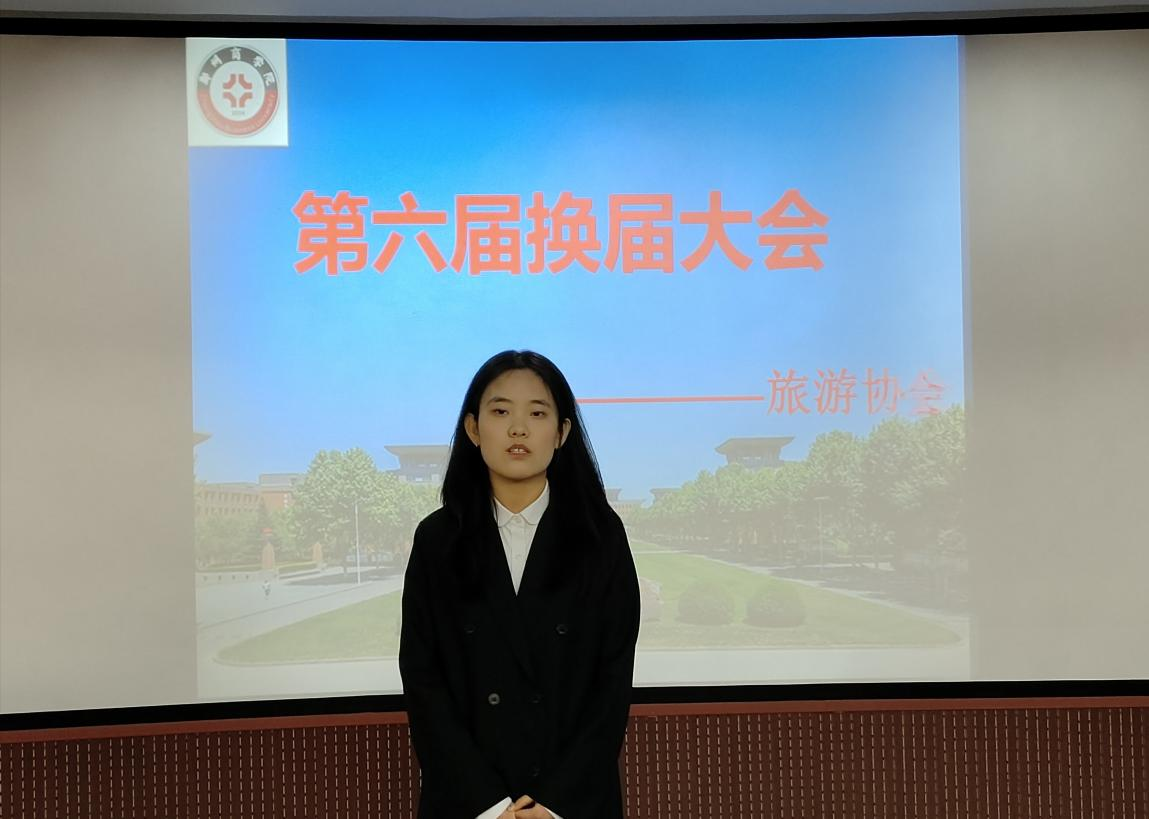 接着由第六届旅游协会会长王志莹进行发言,她分享了自身从干事到会长的成长经历,对旅游协会过去一年所举办的各项活动进行了回顾。她表示只有只有大家精诚团结、互帮互助,协会才能有一个更加美好的明天,举办出高质量的导游讲解大赛。