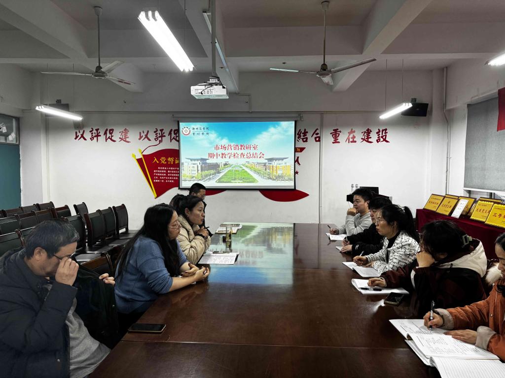 为了全面掌握本学期开学以来教学运行情况,切实抓好市场营销教研室教学常规管理,加强对教师的各个教学环节的监督、检查,认真总结期中教学工作中的成绩,及时发现和改进教学中的存在的问题与不足,切实提高教育教学质量。12月12日,我院市场营销教研室召开期中教学检查总结会议,会议由张玲燕主任主持,全体无课教师参加。
