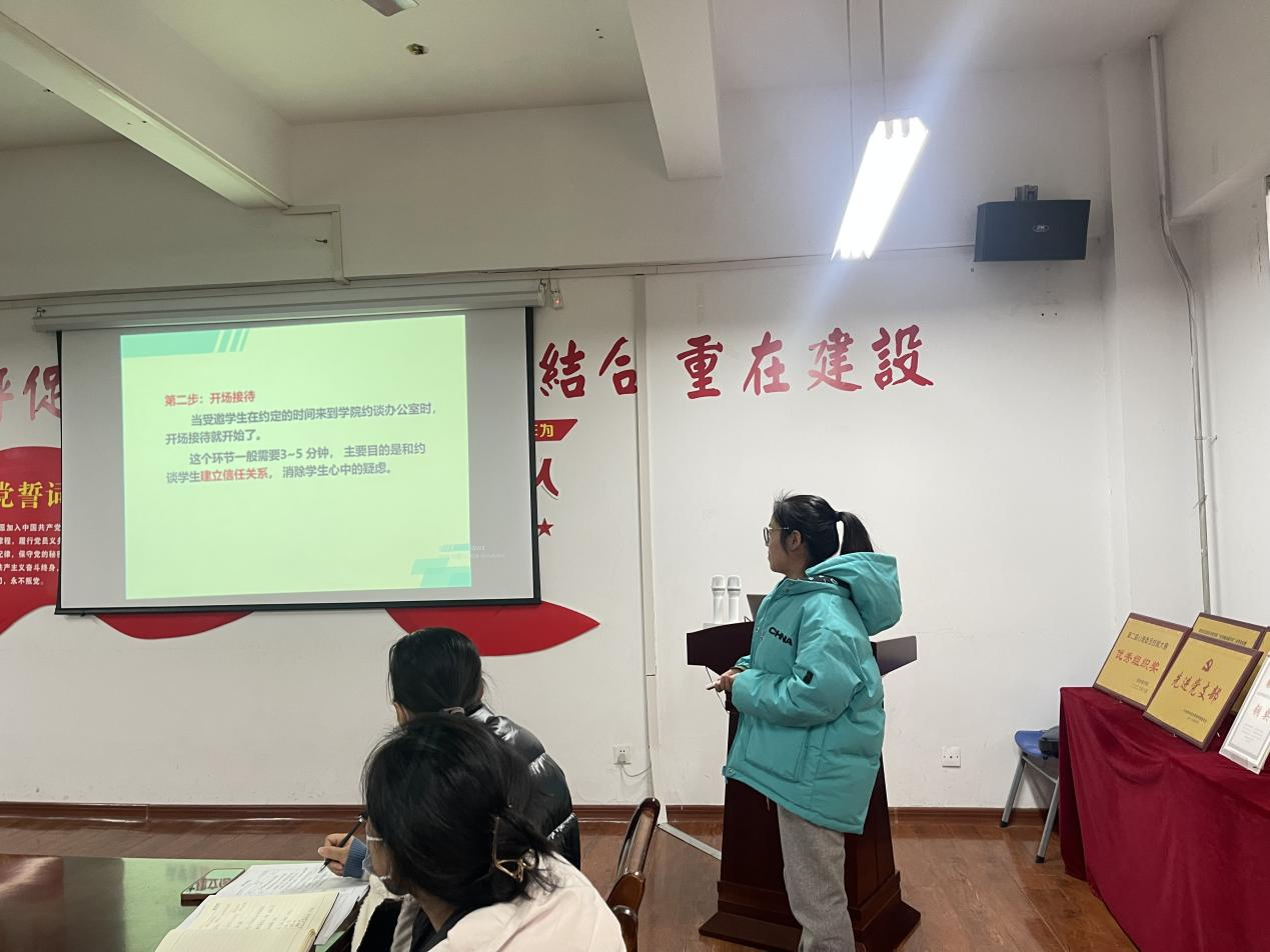 讲座中,黄老师首先对心理约谈与心理日常心理咨询的区别做了简单介绍,并详细讲述了心理约谈的具体方法、主要内容及注意事项,如何敏锐识别学生心理问题。最后魏书记表示,大学生心理问题逐渐常态化,黄老师此次给辅导员们讲授的方法和技巧都非常实用,心理健康是辅导员日常工作的重中之重,辅导员应合理有效利用心理约谈,关心爱护学生,走进学生内心。