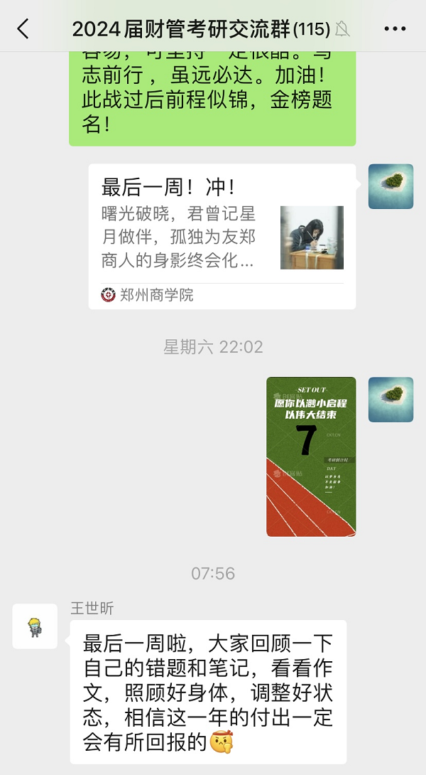 2024年全国硕士研究生招生考试即将到来,为帮助考研学子坚定考研信心、缓解备考压力,管理学院在坚持不打扰学生自主复习的原则下,为考研学子在最后关键时期提供雪中送炭般的指导与关怀。