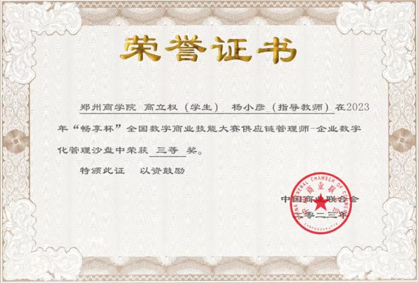 2023年12月17日,由中国商业联合会主办的2023年“畅享杯”全国数字商业技能大赛企业数字化管理沙盘赛项顺利落下帷幕。此次大赛围绕《“十四五”数字经济发展规划》相关要求,以加强数字技术技能人才培养,促进教育链、人才链与产业链、创新链有机衔接为目标,比赛采取线上云竞赛方式,分为初赛和决赛两个阶段,吸引来自全国各地超过2300余名的中职、高职、本科选手参赛。