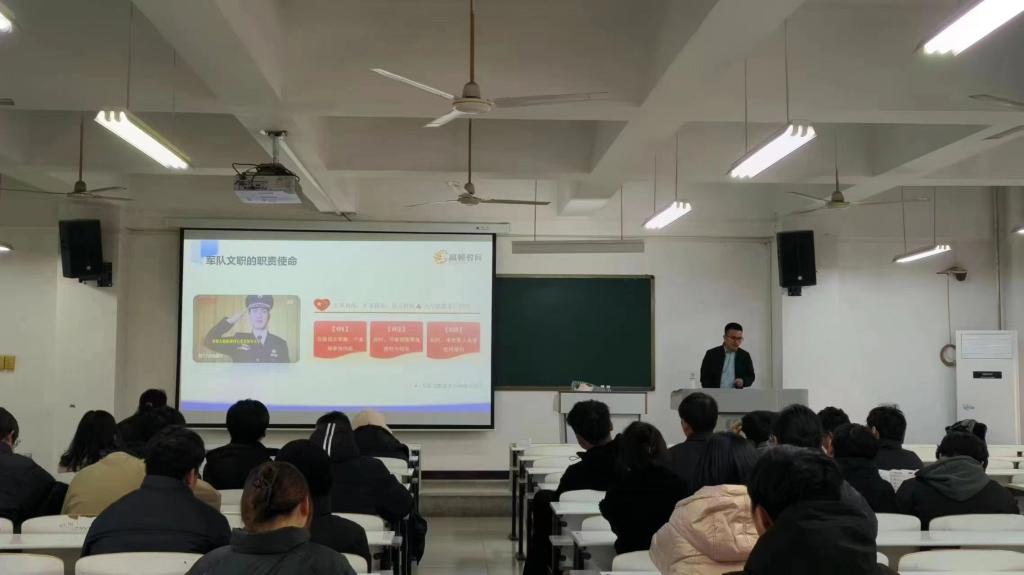 为引导广大学生准确把握就业形势,明确职业发展目标,帮助应届毕业生更好地备考2024年军队文职考试,提高同学们的考试竞争力,管理学院于12月20日在2号教学楼201教室开展全程化就业创业指导——军队文职讲座。本场讲座特邀高顿教育集团优秀讲师祁道钞为大家带来军队文职考试考情讲解。