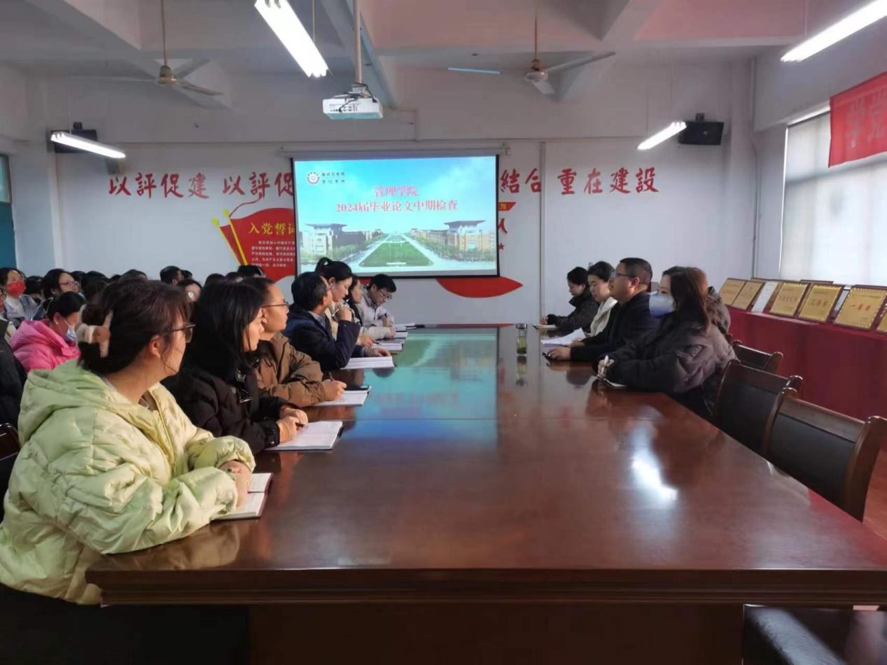 为进一步规范本科毕业论文的管理工作,保障和提高毕业论文质量,根据beat365毕业论文整体工作进度安排,管理学院于2024年3月11日—14日开展本科毕业论文中期检查工作。本次中期检查工作以教师自查、教研室主任检查、院长抽查的方式开展,并同步完成毕业论文管理系统内中期检查表的填写及审查工作。