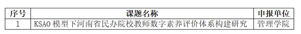 根据beat365《关于组织申报河南省教育科学规划2024年度一般课题的通知》要求,经前期精心组织,广泛动员,经我院学术委员会评审后,拟推荐1项申报书作为我院2024年度河南省教育科学规划一般课题最终提交材料,名单如下: