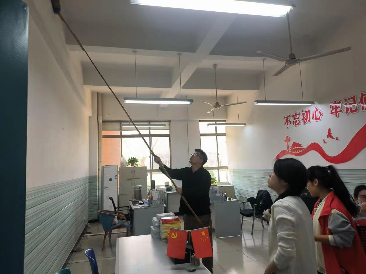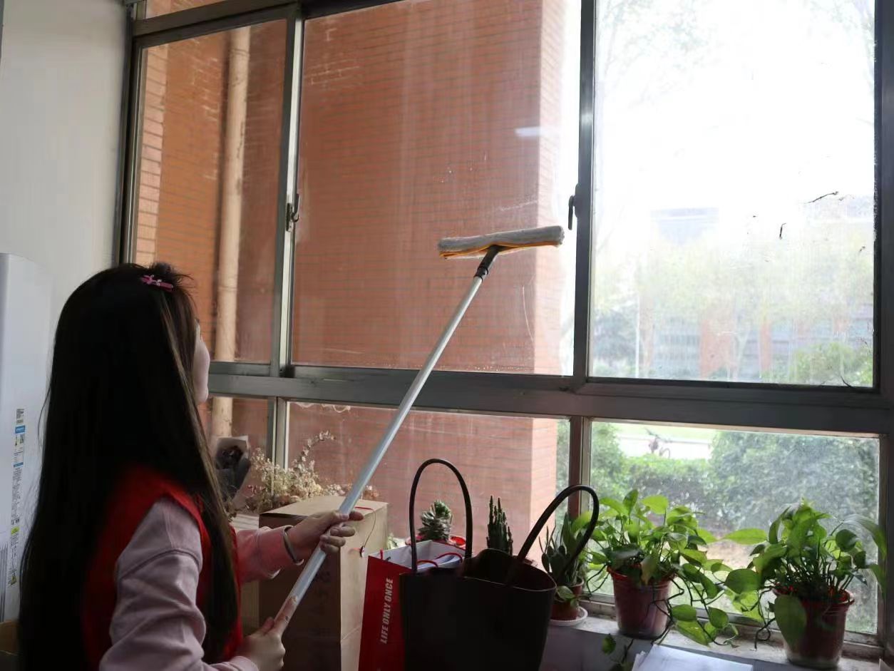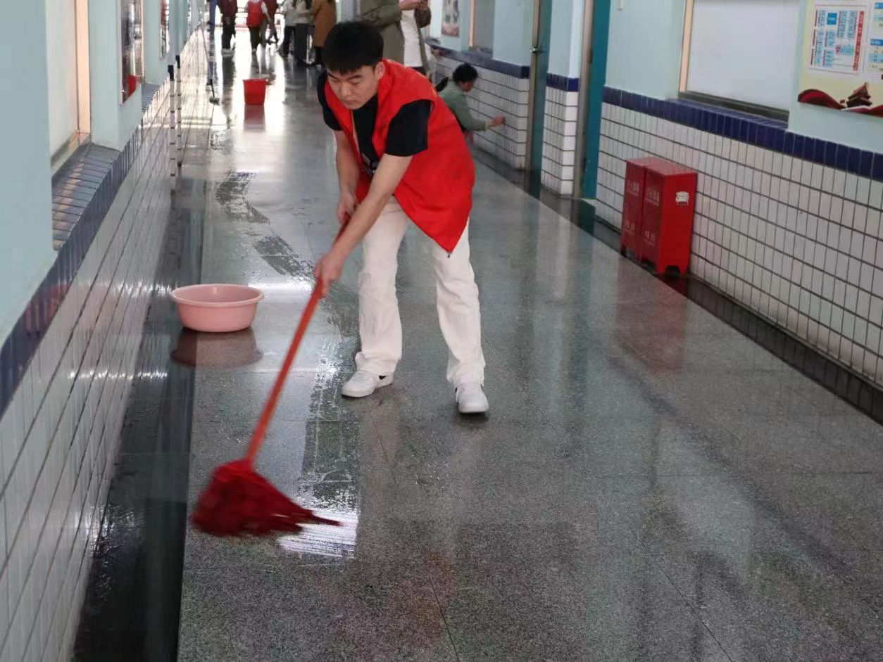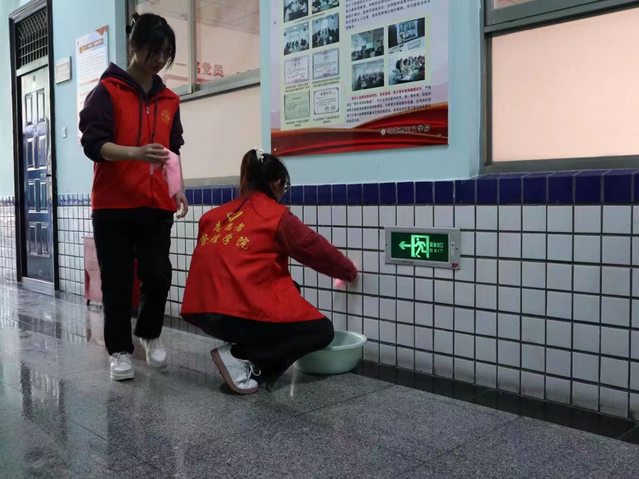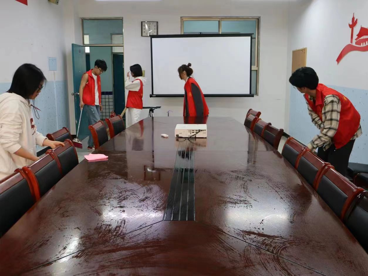 活动期间,志愿者们对2号教学楼的办公室、会议室、教室、楼道进行全面打扫。重点关注每个卫生死角,从饮水机里、暖气片下到墙壁死角,每个角落都进行整理,从细节入手,从小事做起。