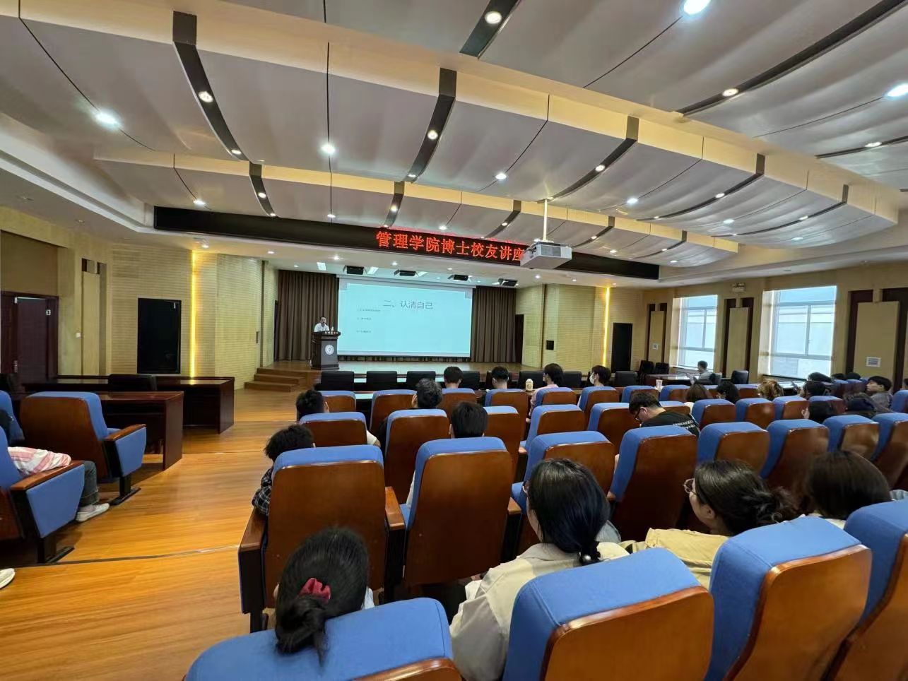 随后,朱家稷校友以朴素的语言娓娓道来,和学弟学妹们分享他一路走来的成长经历和求学过程。他说攻读博士学位的过程不仅是一个学术训练的过程,更是一个塑造自我、认识自我、提升自我价值的过程。他提到,在学术研究中,需要不断思考、质疑、探索和创新,这些能力不仅有助于职业生涯的发展,也是一个人终身学习的基石。他还分享了进入大学后的求学与工作科研历程,他简单介绍了他在追求科学真理道路上的种种挑战、收获和在科研工作中所取得的突出成果。此外,他将继续关注学校的发展,并为母校的建设和发展贡献自己的力量。他也希望学校能够继续关注和支持博士生的培养,为他们提供更多的学术资源和机会。
