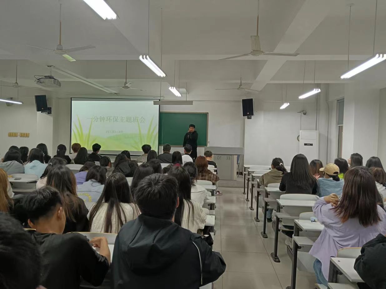 在校园生活那紧凑而又充满活力的节奏中,课间一分钟似乎只是短暂的片刻,很容易被忽视。然而,就是这看似微不足道的一分钟,却蕴含着巨大的环保潜力。为进一步提高同学们的文明卫生意识,5月6日,我院组织进行了“课间一分钟环保”主题班会。
