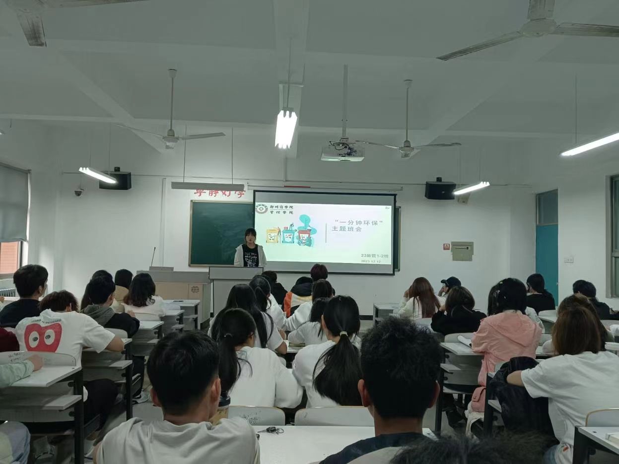 在校园生活那紧凑而又充满活力的节奏中,课间一分钟似乎只是短暂的片刻,很容易被忽视。然而,就是这看似微不足道的一分钟,却蕴含着巨大的环保潜力。为进一步提高同学们的文明卫生意识,5月6日,我院组织进行了“课间一分钟环保”主题班会。