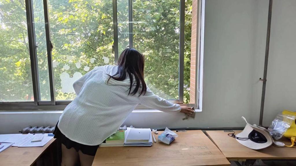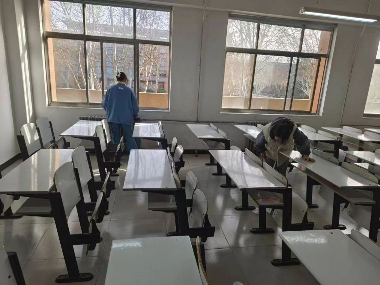 活动过程中,我院学子积极投入到教室卫生清扫的热潮中,认真清理教室的每一个角落。在同学们的相互配合下,清扫工作有序开展起来。他们用扫把扫去教室里的灰尘,用抹布擦去黑板上的字迹,针对死角的零散垃圾、纸屑等进行全方位清洁,在打扫过程中,充分发挥了不怕苦、不怕累的精神,用实际行动展现了“劳动最光荣”的传统美德。