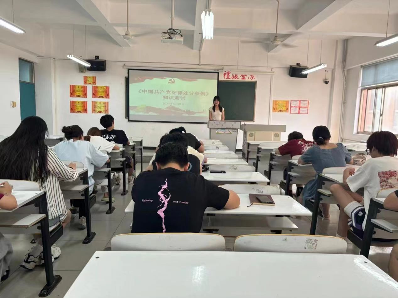 为了维护党的纪律,提高党员的纪律性和自我约束能力,2024年5月14日-21日,管理学院学生第五党支部开展五月“严守党的纪律,永葆党员本色”主题党日活动,对《中国共产党纪律处分条例》进行深入学习。