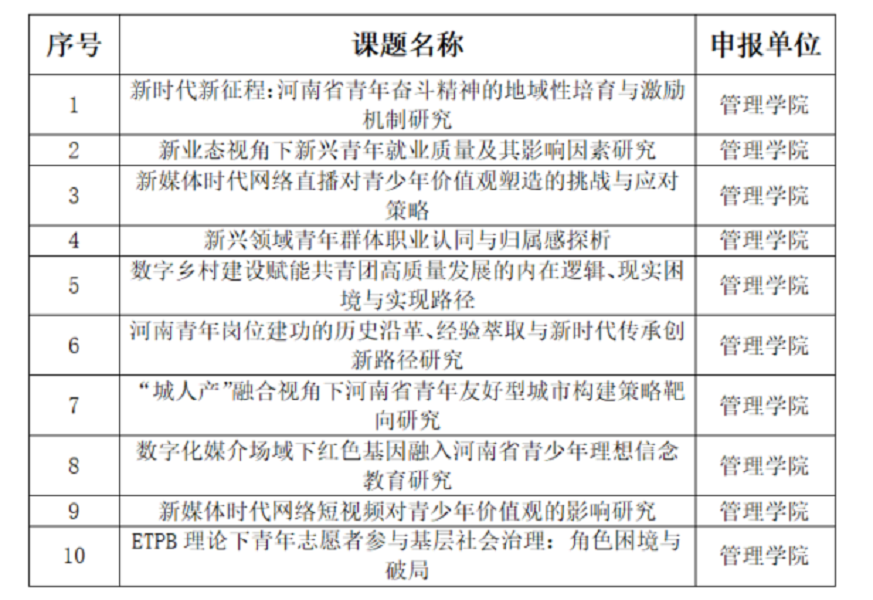 根据beat365《关于组织申报2024年度专项调研课题(青少年工作研究)的通知》要求,经前期精心组织,广泛动员,管理学院共收到11项申报书。经我院学术委员会评审后,拟推荐10项申报书作为我院2024年度专项调研课题(青少年工作研究)最终提交材料,名单如下: