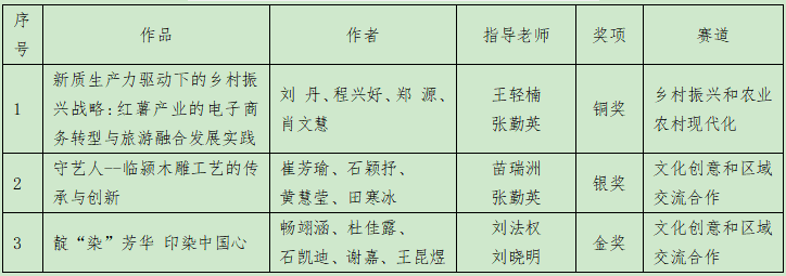 近日,共青团河南省委、河南省教育厅、河南省人力资源和社会保障厅、河南省科学技术协会、河南省学生联合会下发《关于公布2024年“挑战杯”河南省大学生创业计划竞赛获奖名单的通知》(豫青联字〔2024〕25号),2024年“挑战杯”河南省大学生创业计划竞赛最终结果正式公布,我院获得金奖1项、银奖1项、铜奖1项,刘法权、刘晓明荣获优秀指导教师,在获奖质量、数量上取得了新突破。