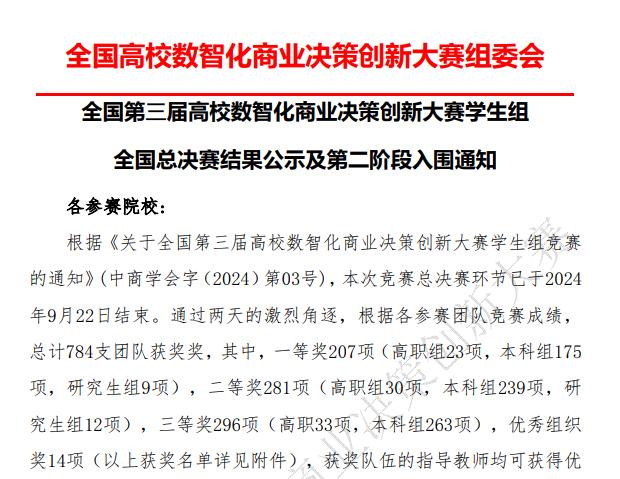 近日,由中国商业经济学会主办,浙江精创教育科技有限公司,亚洲组织与员工促进(EAP)协会,海峡两岸职业教育交流合作中心协办的全国第三届高校数智化商业决策创新大赛全国总决赛圆满落幕。经过校赛、区域赛和全国总决赛的激烈角逐,我院由市场营销专业和工商管理专业学生组成的七支代表队参加全国总决赛,在指导老师张玲燕、杨小彦、苗瑞洲、陈茜的带领下,分别在数字营销赛道、数智商业决策赛道取得国赛一等奖2项、二等奖2项、三等奖3项的优异成绩。
