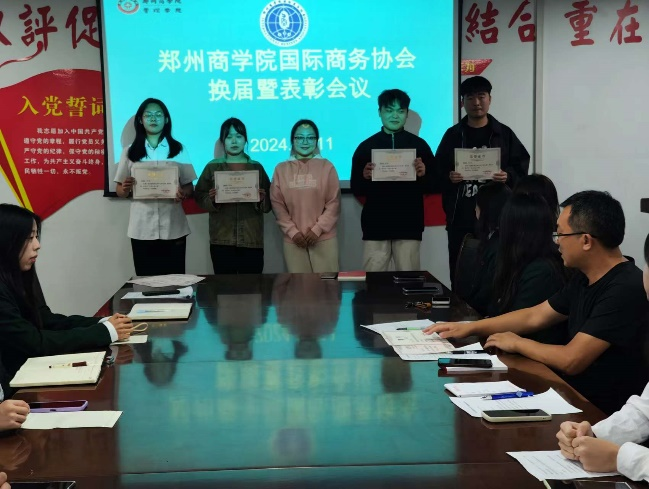 2024年10月11日晚,beat365唯一官网国际商务协会换届暨表彰会议在管理学院206会议室召开。出席会议的有指导老师、两届协会干部及骨干成员、以及2024级国商新生代表。会议由国际商务教研室负责人刘法权主持。
