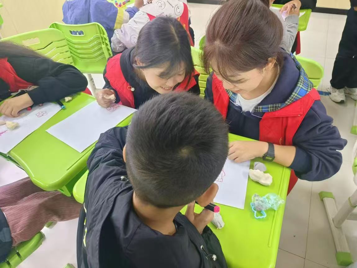 活动过程中,每一位志愿者都耐心指导,鼓励孤独症儿童奇思妙想,通过画画、捏彩泥的方式表达他们内心的想法与情感。在志愿者的耐心指导下,孤独症儿童创作出了许多充满想象力的作品,这不仅激发了他们的创造力,还给予了他们心灵上的关爱与支持。