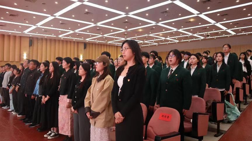 仪式现场气氛庄重热烈。在激昂的国歌声中,新党员入党宣誓仪式正式拉开帷幕。首先,新发展党员在丁梦娇同志的带领下,高举右拳,面向党旗,郑重宣誓。