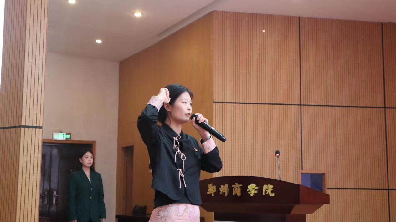 随后。预备党员代表常清同学发言,她深刻地体会到了中国共产党的伟大和光荣,也更加坚定了自己的理想信念。在今后的日子里,以党员的标准严格要求自己,不断提高自身的思想政治素质和业务能力水平。