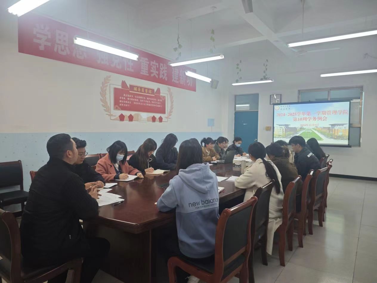11月5日下午,管理学院召开2024-2025学年第一学期第10周学务例会,我院党委书记宋森、团委书记陈勇彬及全体辅导员参会。