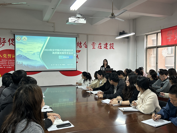 此次会议主要由张轶群、王一帆等参加培训的教师代表就培训内容和培训心得与参会人员进行分享和交流。张轶群老师前往武汉参加中国自然资源科学大会,会议主题是传承地学特色创新自然资源科学技术,培育新质生产力赋能长江发展新格局。张老师通过专家报告分享、分论坛专场和旅游研究热点三个方面给大家介绍了此次会议的主要内容,最后张老师发表感想,说此次会议让老师们接触到最新的研究成果和技术动态,了解了领域内的前沿问题和发展趋势。王一帆老师参加的是在西安召开的乡村振兴与县域经济高质量发展学术会议,会议主题是探讨乡村振兴与县域经济发展的前沿议题。王老师重点给大家分享了乡村振兴学术研究的探索与思考。王老师表示通过参与这样的高水平学术活动,将进一步推动相关领域的学术研究和实践应用,为国家的乡村振兴战略和县域经济的高质量发展贡献智慧和力量。