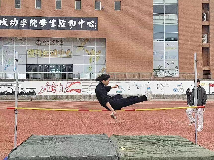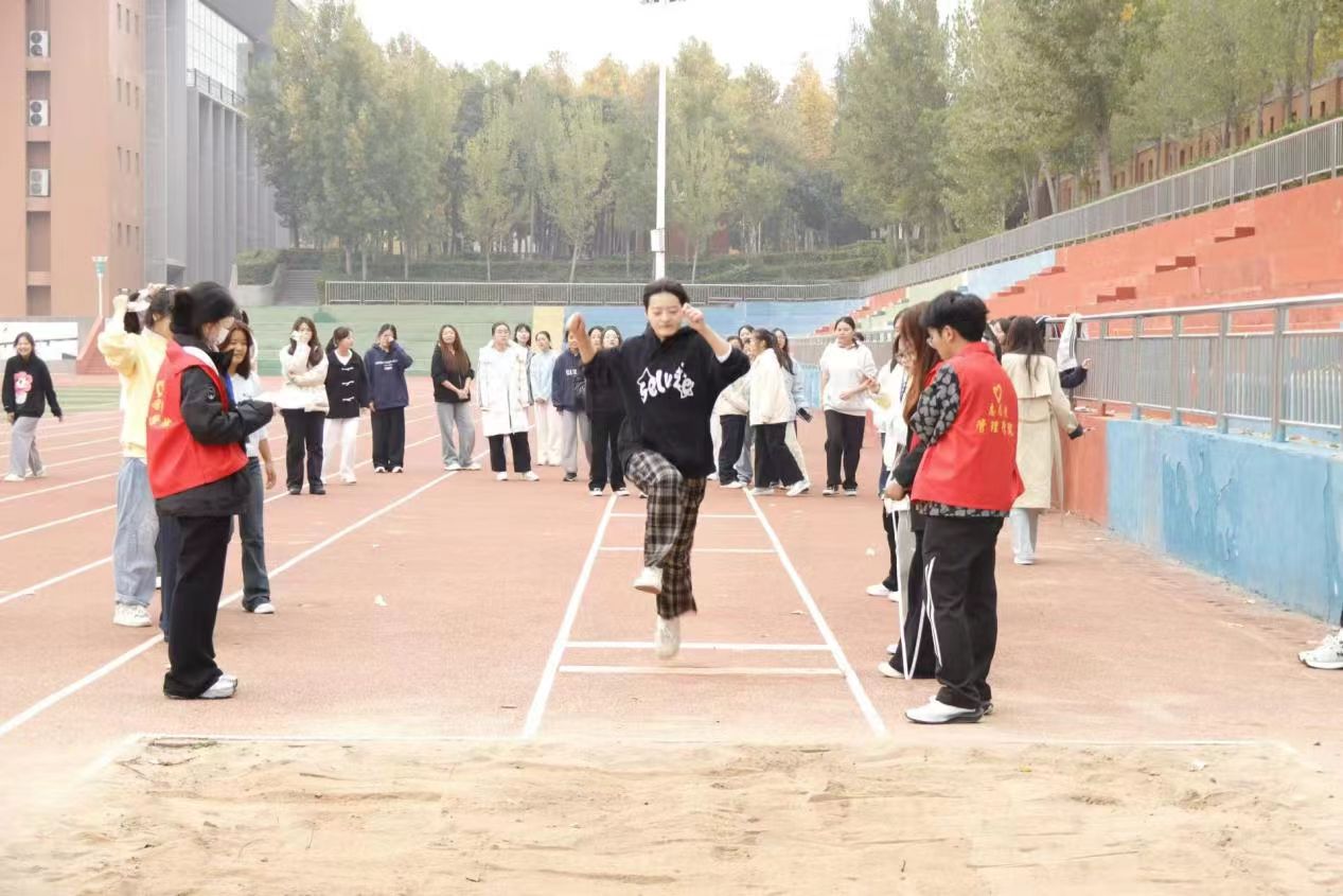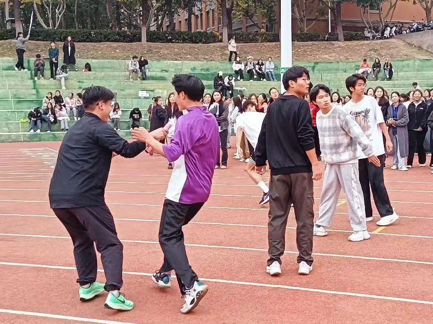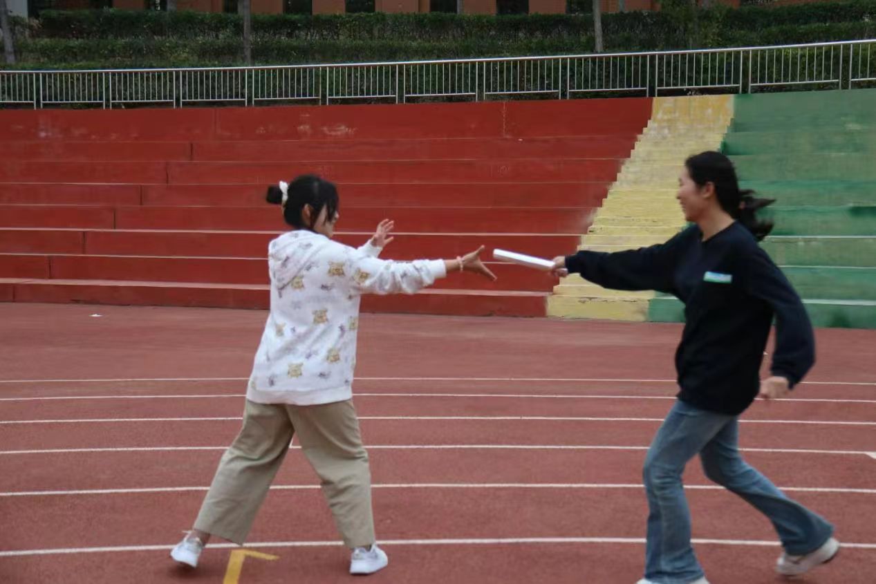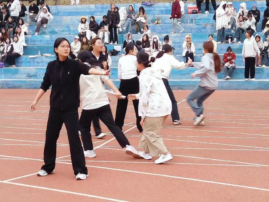 除传统的田径项目外,本次运动会还增设了多项趣味比赛,如10人11足、学生会代表与辅导员接力赛。这些项目不仅考验了运动员们的体能与技巧,更增强了团队之间的协作能力和师生间的凝聚力。赛场上,运动员们奋力拼搏,场下的同学们纷纷呐喊助威,整个体育场洋溢着浓厚的体育氛围和青春活力。