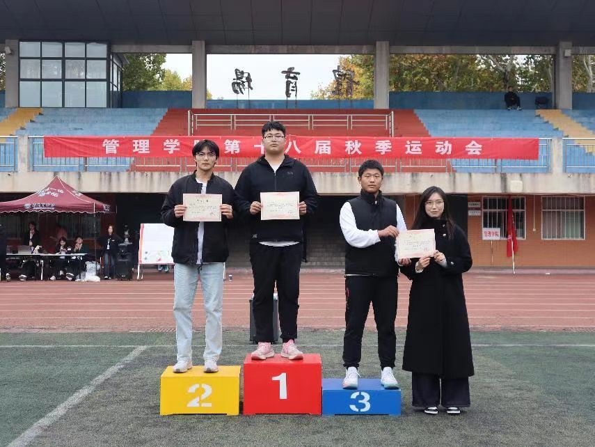 运动是体育的灵魂,运动之美无处不在。为期一天的运动会中,运动健儿们顽强拼搏、奋勇争先,创下佳绩的同时本次运动会闭幕式也随之而来。学院领导老师为取得优异成绩的运动员们和优秀班级团体颁发证书。最后,陈勇彬书记宣布管理学院第十八届秋季运动会到此结束。