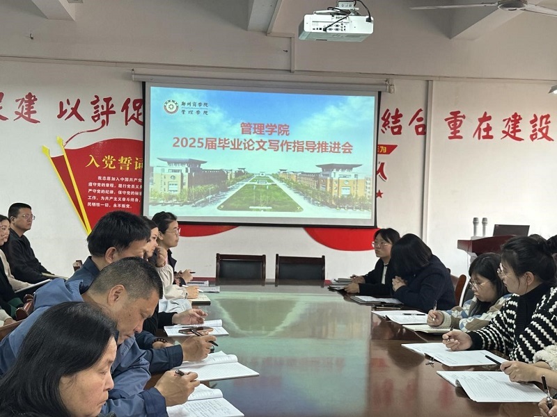 为严密监督学术研究质量,落实研究型人才发展的规划,切实提高学术论文的水准,为推进毕业论文各项工作,11月14日下午管理学院在2号楼206会议室召开了2025届毕业论文写作指导推进会,管理学院李晓翠院长、张卫丽副院长及各教研室主任和无课教师参加了此次会议。