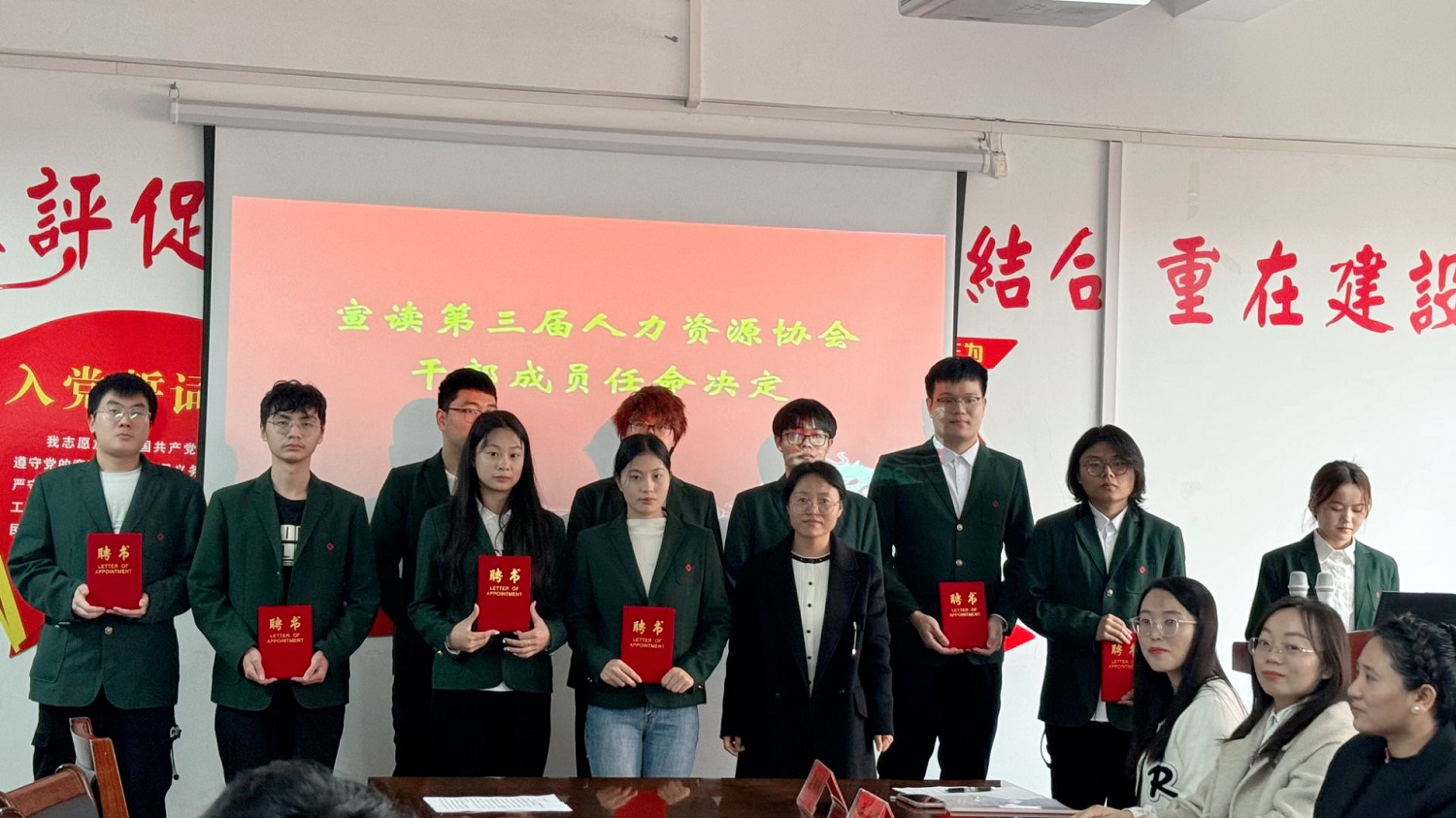 会议伊始,由人力协会指导老师吴阳阳宣读协会干部任命决定。吴老师介绍了人力资源协会成立的背景和初衷,强调了协会对成员理论知识应用能力提升、实践能力强化和创新精神培养的重要作用。同时,对协会全体成员在各项学科竞赛中所付出的努力表示肯定。根据协会发展需要,经协会讨论、商议决定,任命杨浩源等10位同学为第三届人力资源协会干部。吴老师希望以上干部不忘初心,明确责任,戒骄戒躁,认真履行职责。同时也希望各位协会成员能够给予协会干部一定的成长空间,给予最大的包容和支持,与协会一起共成长。