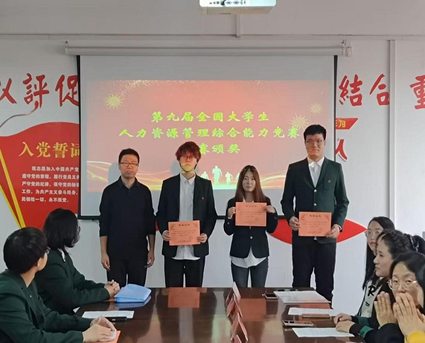 随后,向上一学期在各级各类学科竞赛中获奖的同学进行表彰。上学期,协会举办了第十届海峡两岸暨港澳大学生职业技能大赛和第九届全国大学生人力资源管理综合能力竞赛校内赛,这其中涌现了一批团队合作意识强、训练刻苦、成绩优异的同学,被评为“先进个人”。协会成员在2024年河南省人力资源数据分析大赛中获得三等奖;在2024年全国高校商业精英挑战赛品牌策划竞赛全国总决赛暨(新加坡)全球品牌策划大赛中国地区选拔赛,荣获全国三等奖;2024年全国高校商业精英挑战赛创新创业竞赛创业模拟赛道全国总决赛中荣获一等奖一项,二等奖一项;在2024年全国高校商业精英挑战赛流通业经营模拟竞赛全国总决赛中,获得一等奖一项,二等奖三项。在上述赛事中,人力资源协会充分落实“以赛促学”的宗旨,培养了学生的分析、执行及沟通协调能力,增强了学生运用信息化手段处理实际问题的工作能力。