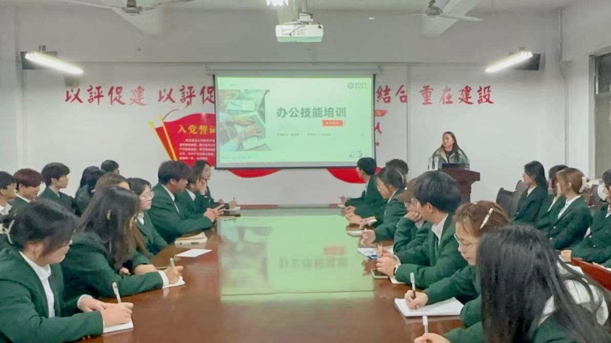 开班仪式结束后,遆瑞娇老师为我们带来了“团干塑星”培训班第一讲——办公技巧培训。她为大家详细的讲解了办公软件的使用方法,如word文档、Excel表格、PPT演示文稿的制作与排版要求。她向团学干部们展示了多种快捷键的运用,大大提高了团学干部们对文档、表格、PPT的处理能力。通过此次培训,团学干部们学会了更多的办公软件的运用,为以后更加熟练的开展工作奠定了基础。