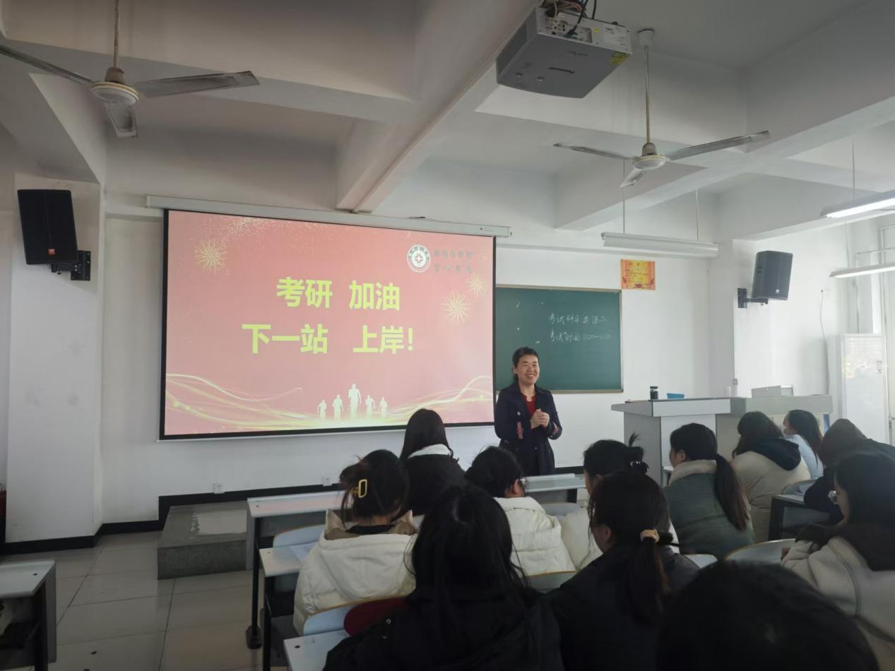 随后,院领导做冲刺动员讲话。宋森书记对考研学子刻苦学习、坚持不懈的学习态度给予肯定和表扬,激励同学们行好万里船,守好压舱石,坚定目标,劳逸结合,带着希望以最好的状态迎接考试!张卫丽副院长希望同学们能够保持稳定的心态、坚定的信心、高效的复习和健康的身体,坚持做到把握重点、攻克难点、消除疑点,最后考出理想成绩!