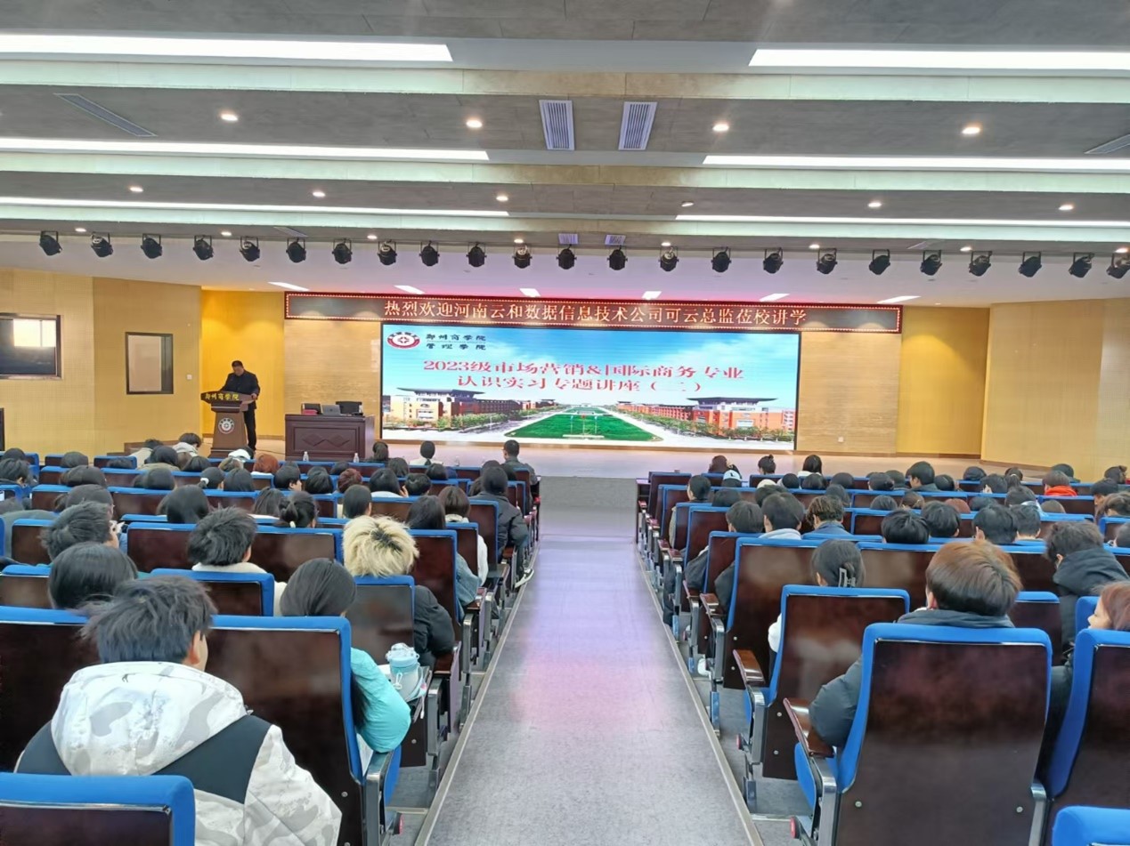 11月29日上午,我院在自立大楼三楼报告厅举行2023级市场营销专业认识实习专题讲座,讲座由李鹏菲老师主持。会上,河南云和数据信息技术有限公司市场运营总监可云先生受邀作了《新媒体行业的商业机遇与职业化发展》专题报告,内容涉及新兴技术如何重塑就业市场,尤其强调了目前全域营销的转变,包括视频营销和直播营销的兴起,以及大数据分析和算法推荐技术在网络平台的应用。此次专题讲座为学生提供了深入了解前沿技术与网络行业的窗口,有助于学生清晰认知行业对市场营销专业人才的具体需求,进而提升自身职业规划意识。