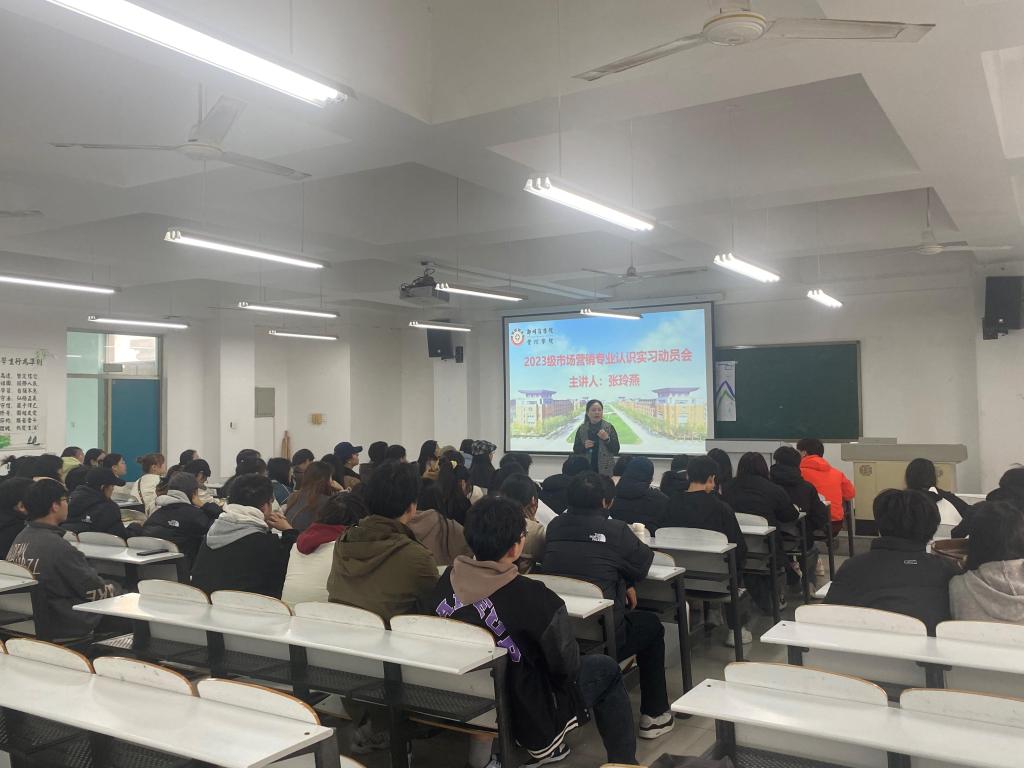11月25日,我院市场营销教研室组织召开2023级市场营销专业认识实习动员会。会上,市场营销教研室主任张玲燕详细阐述了本次认识实习的目的和意义,强调认识实习对于学生理解专业知识和提升问题解决能力的重要性,并向学生们介绍认识实习的内容安排,要求全体学生认真对待,以积累实践经验。此外,李鹏菲老师在会上强调了认识实习期间的纪律、安全和沟通的重要性,要求学生遵守规定,听从安排,确保本次认识实习顺利结束。