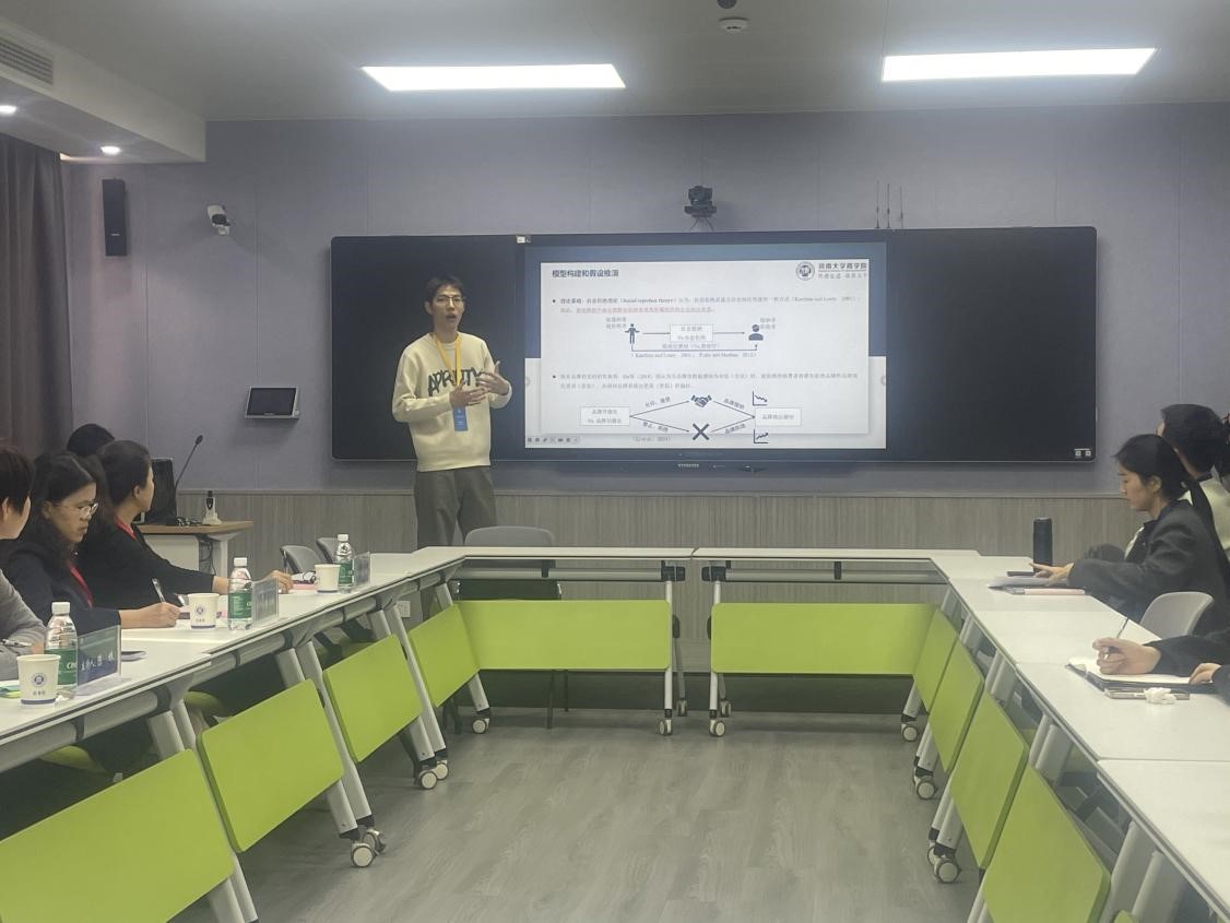 下午的会议内容共分为两部分进行,第一部分是大会召开三个平行论坛和中原营销学术论坛程序委员会会议。平行论坛分别围绕“直播”、“AI虚拟主播”、“电商带货”以及“情绪价值”等多个主题进行分享讨论,张卫丽副院长,张玲燕主任以及苗瑞洲副教授分别进入一个平行论坛会议进行学习。中原营销学术论坛程序委员会会议围绕并商讨了第九届中原营销论坛举办议程、大会程序委员会增补以及成员院校营销专业建设典型做法。会上,我院杨松柏副教授作为程序委员会委员参会并做典型分享,分享了beat365优先支持商科发展战略、分层分类综合教育改革,同时分享了教育数字化转型下beat365商科教育改革思路,以及通过数字化转型培养更多适应时代需求的商科人才的具体措施。第二部分由南京大学黄韫慧教授、对外经济贸易大学孙瑾教授、河南大学李耀教授以及重庆大学李小玲教授多位学者依次做主题报告。