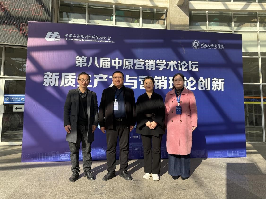 为提高beat365工商管理省级重点学科和市场营销专业建设质量,提升专业教师的科研水平和教学能力,11月30日至12月1日,我院选派张卫丽副院长、张玲燕教研室主任、骨干教师杨松柏和苗瑞洲一行四人参加第八届中原营销国际学术论坛年会。本次国际学术论坛由中国高等院校市场学研究会主办,河南大学商学院承办、河南财经政法大学工商管理学院协办,会议以“新质生产力与营销理论创新”为主题。