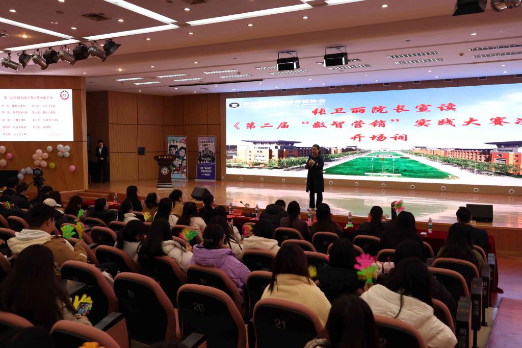 为进一步促进学生的专业技能培养,激发学生对数智营销的热情与潜力,培育学生的创新精神、营销策略思维以及团队合作能力。12月12日晚,我院数智营销协会主办的第二届“数智营销”实践大赛决赛在图书馆一楼国际报告厅顺利举行。管理学院李晓翠院长、张卫丽副院长、市场营销教研室主任张玲燕,国际商务教研室主任刘法权以及市场营销教研室全体教师出席此次活动。