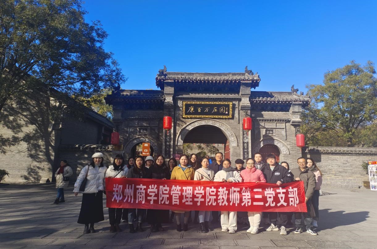 为深入学习习近平文化思想,贯彻落实党的二十届三中全会精神,强化党员的初心使命,我院教师第三党支部于2024年12月19日组织党员代表前往巩义康百万庄园,开展了以“铭记初心使命,传承文化自信”为主题的党日活动。此次活动旨在通过实地学习,深化对习近平文化思想的理解,强化党员思想武装,提升党性修养,并在园内重温入党誓词,坚定理想信念。